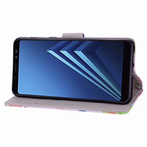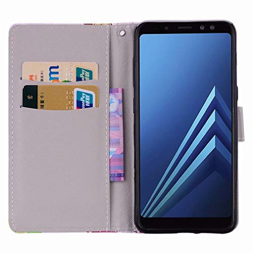 Ttimao - Cover per Samsung Galaxy A8 2018, in pelle PU, con funzione di supporto, applicare alle fessure per carte d'identità-gatto bianco+1* protezione dello schermo