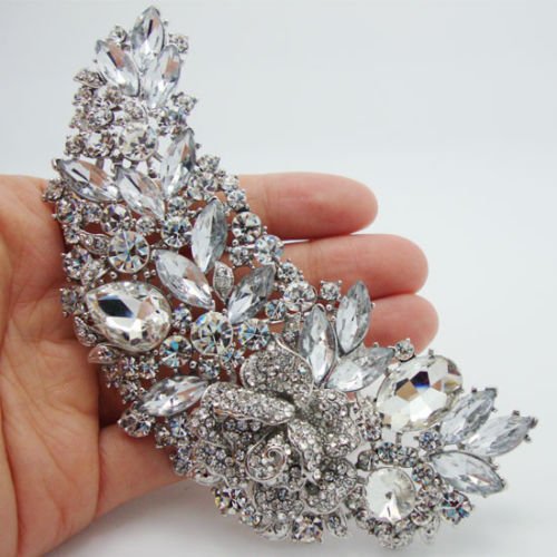 TTjewelry - Spilla a forma di rosa in argento con cristalli austriaci trasparenti