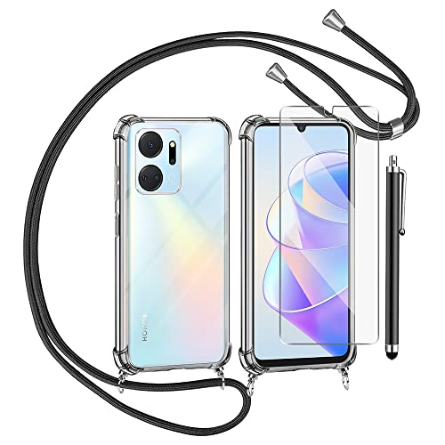 Compatibilità - 1 x custodia con corda per Honor X7a + 1 x pellicola proteggi schermo in vetro temperato+pennino capacitivo Progettato specificamente per Honor X7a.