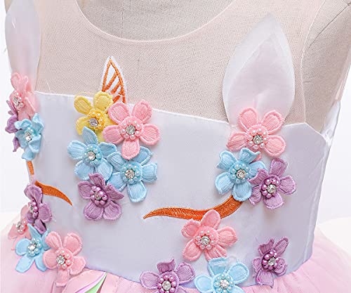 Abito super chic e carino in unicorno floreale per bambina, fiore 3D, stile Unicorno, abbigliamento estivo senza maniche. Questo vestito è realizzato in un colore da sogno rosa, giallo, viola. Tutu Cake design della gonna! Sarà fantastico nella tua bambina.