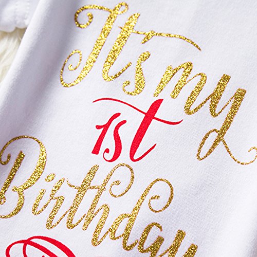 TTYAOVO Bambina 1 ° Compleanno Principessa Tutu Gonna Vestiti 3 Pezzi Set Abiti Pagliaccetto + Gonna + Fascia 133 Rossa