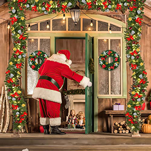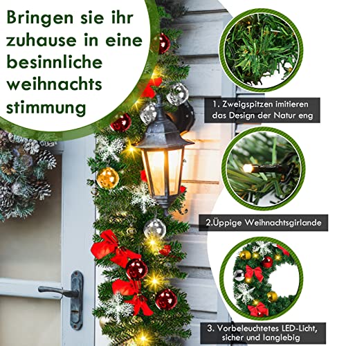 Tubiaz 5m Ghirlanda di Natale, Ghirlanda Abete Artificiale Verde con Bianco caldo 100 Luci a LED, con Decorazione, Ghirlanda Natalizia per Scale, Pareti,Porte, 2 pack