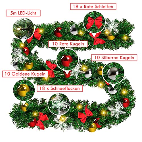 Contenuto della confezione: ecologico e riutilizzabile: 1 ghirlanda di abete, lunghezza: 5 m, con telecomando e decorazione (18 piegati;