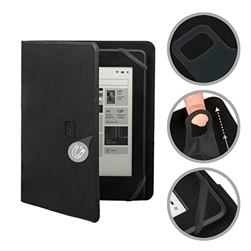 Custodia per eBook reader con chiusura magnetica, realizzata in tessuto tecnico piacevole al tatto. Interno con sistema ad elastici antiscivolo e rivestimento in morbido tessuto antigraffio. Pannetto in microfibra incluso per la pulizia dello schermo.