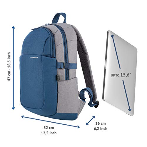 Tucano - Zaino Porta Pc 15.6" Pollici, Compatibile con MacBook PRO 16. Backpack Bip, Zaino Capiente da Ufficio e università, in Poliestere Riciclato