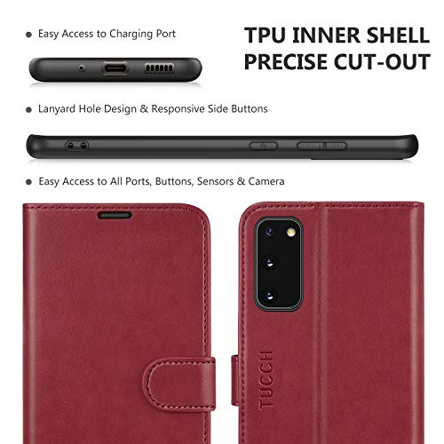 TUCCH Cover Galaxy S20, Custodia Portafoglio Magnetico Slot Porta Carte Blocco RFID Pelle Sintetica con TPU Antiurto Supporto Cellulare Protezione per Galaxy S20 (6,2 Pollici 2020), Rosso Scuro