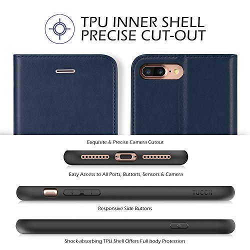 TUCCH Cover iPhone 8 Plus Cover iPhone 7 Plus, Custodia iPhone 8 Plus Pelle Sintetica di Cuoio Flip Stand con TPU Antiurto, Slot per Scheda e Flip Wallet Case per iPhone 8 Plus/ 7 Plus - Blu Scuro