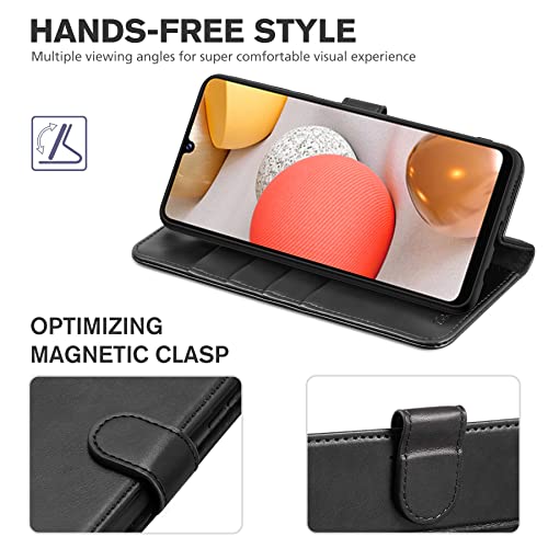TUCCH Custodia Galaxy A42 5G, Cover Galaxy A42 Portafoglio Blocco RFID Slot Carte Magnetica Pelle Sintetica con TPU Supporto Cellulare Protezione per Galaxy A42 5G (6,6 Pollici), Nero