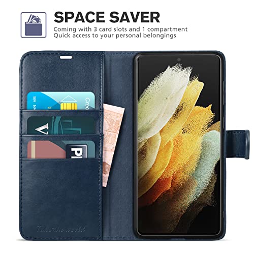 TUCCH Custodia Galaxy S21+ Plus a Portafoglio in Pelle Sintetica con Chiusura Magnetica, AntiurtoTPU Blocco RFID, Porta Carte di Credito, Custodia Protettiva per Galaxy S21+(6.7) 5G, Blu