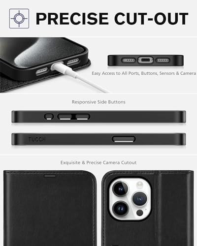 ✯✯✯ Massima Protezione per iPhone 15 Pro Max (6.7") 2023 5G ✯✯✯ Custodia a portafoglio TUCCH per iPhone 15 Pro Max 2023 protegge il tuo telefono da graffi e polvere. Questa custodia è adatta solo per iPhone 15 Pro Max, non adatta per iPhone 15 / iPhone 15 Pro / iPhone 15 Plus. Nota: questa custodia per telefono non funziona con MagSafe