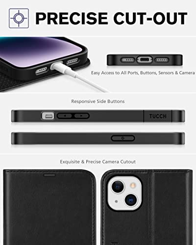 TUCCH Custodia per iPhone 14 Plus, Cover Pelle Sintetica TPU [RFID Blocking] Portafoglio Supporto Slot per Schede Chiusura Magnetica Compatibile con iPhone 14 Plus 5G (6,7 pollici, 2022) - Nero
