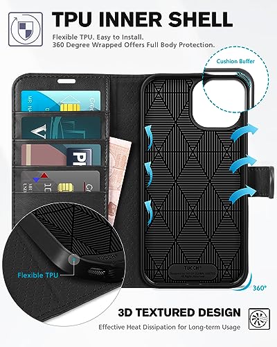 TUCCH Custodia per iPhone 15 5G, Cover Portafoglio [RFID Blocking] Custodia Pelle Sintetica TPU Antiurto, Supporto Slot Schede Protezione Integrale Compatibile con iPhone 15 (6,1 pollici, 2023) - Nero