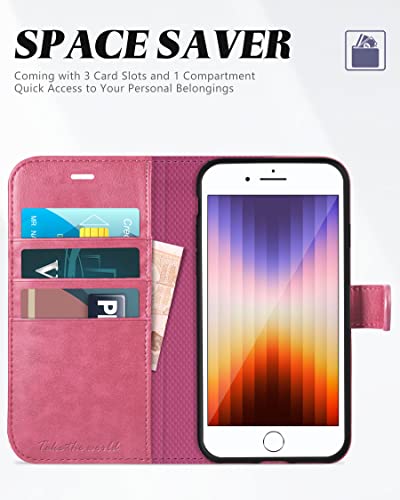 TUCCH Custodia per iPhone SE 2022, per iPhone SE 2020 Cover per iPhone 8, per iPhone 7 Portafoglio Tasca Carte Portacellulare Antiurto Chiusura Magnetica per iPhone SE3/SE2/8/7 (4,7”), Rosa