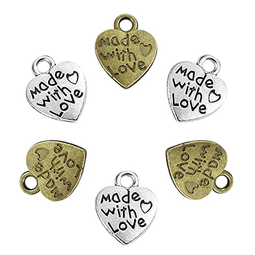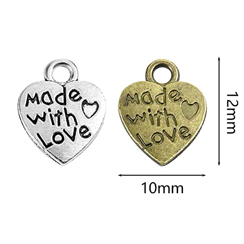 Tucireat Ciondolo Cuore 200 Pezzi Ciondoli a Forma di Cuore Ciondoli Cuore Pendenti Charms Cuoricini Decorativi Ciondoli per Bracciali Fai da Te Ciondoli per Bomboniere Made with Love