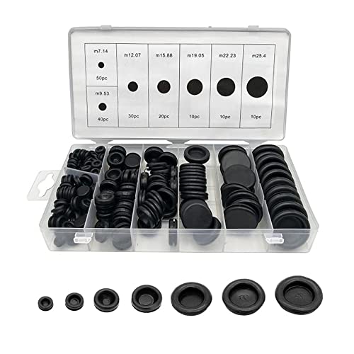 Un set di 170 pezzi: la confezione include 170 pezzi di gommini passacavo in 7 dimensioni comuni (50 pezzi x 7,14 mm / 40 pezzi x 9,53 mm / 30 pezzi x 12,07 mm / 20 pezzi x 15,88 mm / 10 pezzi x 19,05 mm / 10 pezzi x 22,23 mm / 10 pezzi x 25,40 mm)