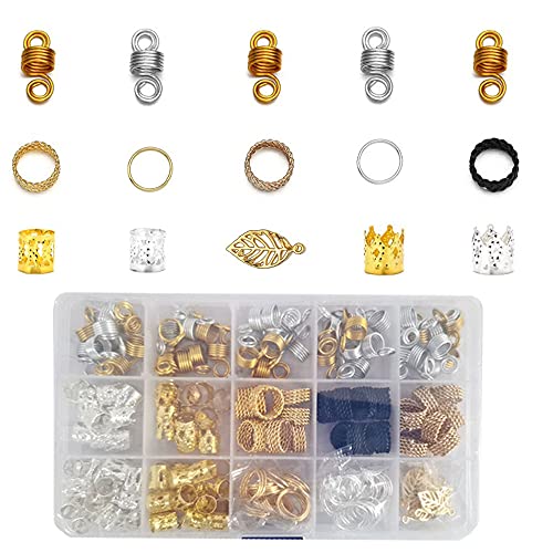 Tucireat Perline Capelli 200 Pezzi Anelli per Treccine Africane Gioielli per Capelli Bobina dei Capelli Anelli a Treccia per Capelli Anelli di Capelli Treccia Metallo con Scatola
