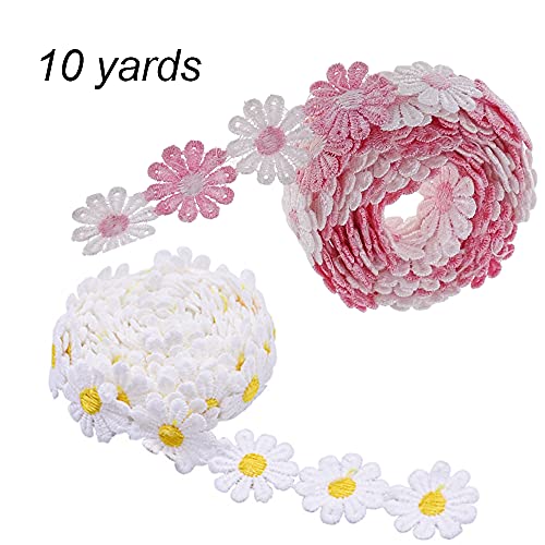Tucireat Pizzo Bianco 10 Yarde Pizzo al Mmetro Passamaneria Decorativa Pizzi e Merletti Margherite Nastro Pizzo Cintura Raso Fiori Pizzo per Decorazioni Passamaneria per Tessuti Pizzo per Cucire
