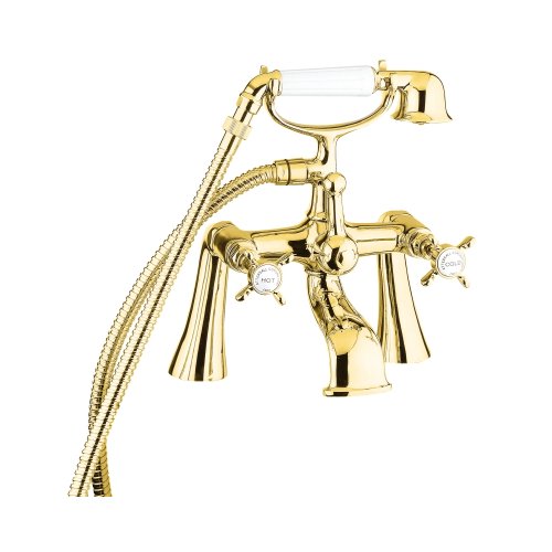Deva TUD03/501 - Rubinetto Coronation Pillar per vasca da bagno, con manopola doccia, finiture dorate