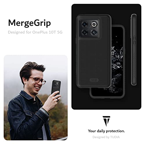 TUDIA DualShield Grip compatibile con Cover OnePlus 10T 5G, [MergeGrip] Doppio Strato Antiurto Sottile Grado Militare Antiscivolo Resistente Rigida Custodia Protettiva - Nero Opaca