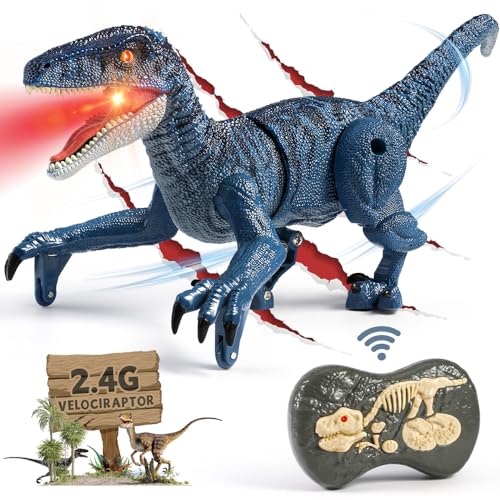 Mini Tudou 2.4Ghz Giocattoli di Dinosauri Giurassici per Bambini,Telecomando Giocattoli Dinosauro con Luce & Suono,Robot Velociraptor Giocattoli,Giocattoli Dinosauro Regalo per i ragazzi età 3 4 5 6 7