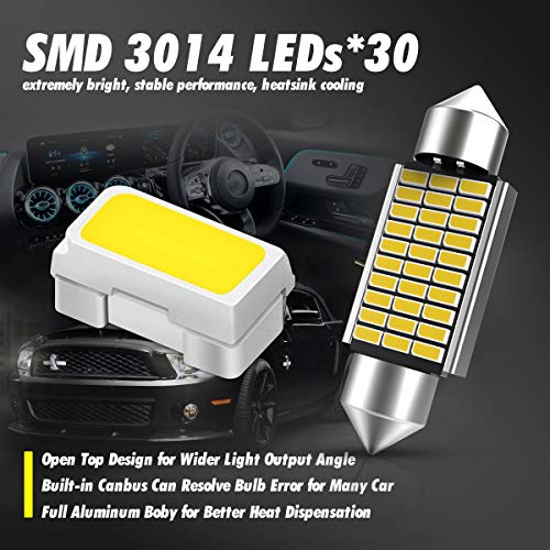 TUINCYN Lampadine LED 39MM Bianco 30 SMD 3014 Chipset 6418 DE3425 DE3423 Luci LED per interni Targa CANBUS Light Dome Door Lampadina di cortesia (confezione da 4)