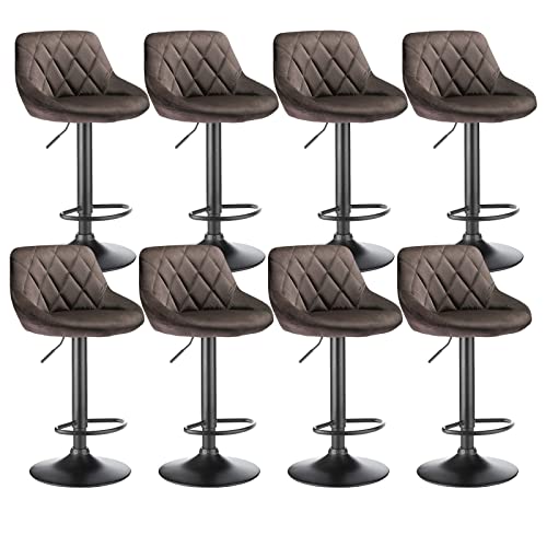 TUITUI Set di 8 Sgabelli da Bar Velluto, Sgabello Alto da Cucina con Altezza Regolabile (84,5-105) cm, Sgabello Bar con Schienale e Poggiapiedi, Girevole 360° (Marrone)