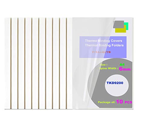 TUKA-i-AKUT 10x 6mm Copertine per Rilegatura Termica, A4 Cartelline Termiche, Larghezza Dorso 6 mm - Capacità 60 Fogli, Fronte trasparente, 10 pz, Bianco Colore, TKD9200-A4-white-10x
