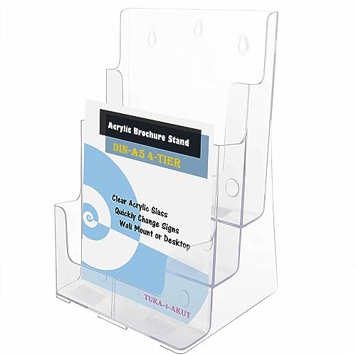 [ Confezione da 2 ] TUKA-i-AKUT 4 livelli A5 portadepliant alto per cataloghi è una soluzione di presentazione professionale per cataloghi, volantini, depliant, brochure, menu, ecc. in ufficio, sala vendite e fiere. Il supporto per volantini è realizzato in acrilico trasparente e ha una leggera inclinazione, offrendo un buon modo per presentare i tuoi materiali pubblicitari in modo ordinato, salvaspazio, chiaro e ottimale nel campo visivo del tuo cliente.