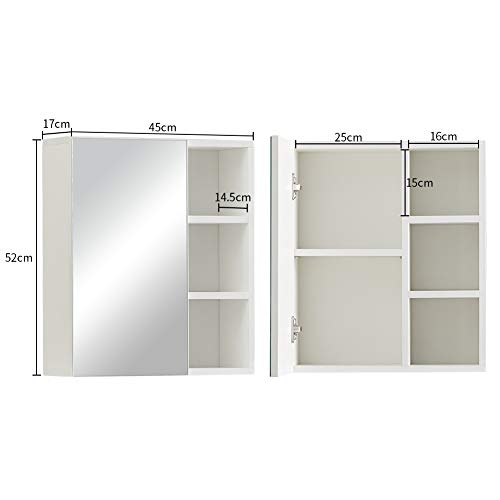 Tukailai - Armadietto con 1 anta e specchio, per bagno, da appendere alla parete, con mensole portaoggetti, impermeabile, con telaio in legno
