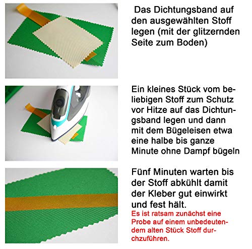 Perfettamente adatto per tessuti impermeabili, vestiti, tende e tetti. Una applicazione è la sigillatura per la protezione del tessuto, la seconda per la riparazione di un tessuto rotto.