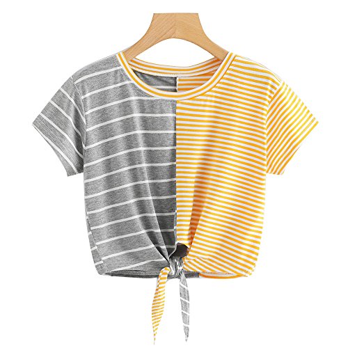 Tukistore - Maglietta a maniche corte, da donna, modello Basic Stripe Spleißen Tie Front Knot 2xl Gelb