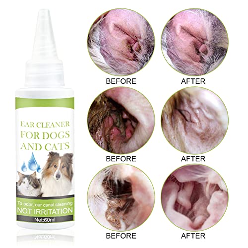 TUKNN Gocce per Acari dell Orecchio,Gocce D'acari,Pulisci Orecchie Cane e Gatto,Detergente per Orecchie per Cane,Dog Ear Cleaner,Stop Prurito Rimuovere Earwax,Pulisce,Deodora,Elimina Gli Odori,60 ml