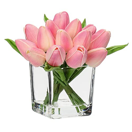Materiale PU di alta qualità: questi tulipani multicolori realizzati in materiale PU hanno una consistenza reale e sono molto più stabili rispetto ai tipici fiori di seta. I tulipani rimangono in un vaso di vetro quadrato con acqua artificiale per renderlo realistico. A differenza dei veri tulipani, che svaniscono e perdono i loro petali dopo pochi giorni, questi fiori di tulipani artificiali realistici rimangono freschi per sempre.