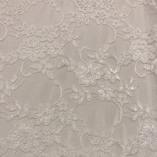 Tulle ricamato elasticizzato al metro, senza bordo, a smerlo morbido e leggero, per abbigliamento donna, abbigliamento danza BIANCO SETA