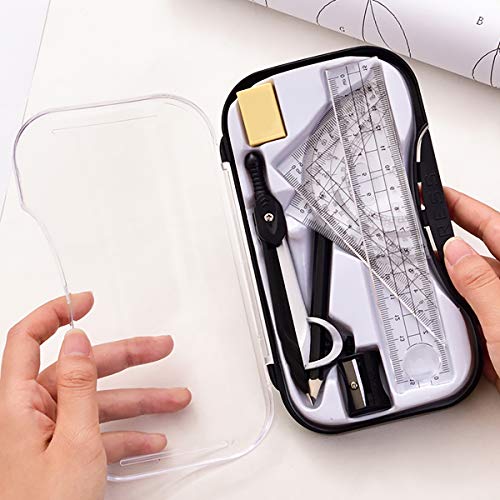 Set di bussole da disegno, geometria, matematica, goniometro scolastico per studenti in custodia per il trasporto