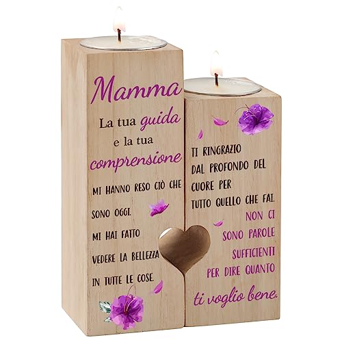 Tulolvae Regalo Mamma Compleanno, Candelabro a Forma di Cuore Originali Festa Della Mamma Natale San Valentino Idee Regali per Mamma Donna da Figlio e Figlia