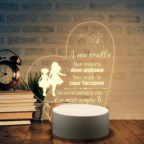 Regalo Sorella Compleanno -- ti chiedi sempre cosa regalare a tua sorella per il suo compleanno? Questa luce notturna in acrilico a forma di cuore è molto adatta. Quando la tua amica riceve questo regalo, vedrà questo amore e sentirà il tuo amore e la tua gratitudine per lei.
