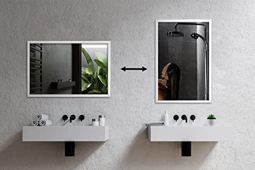 Tulup Specchio Bagno Glass Wall Industriale Temperato 70x50 cm Moderno Grand Cornice Bianca Soggiorno