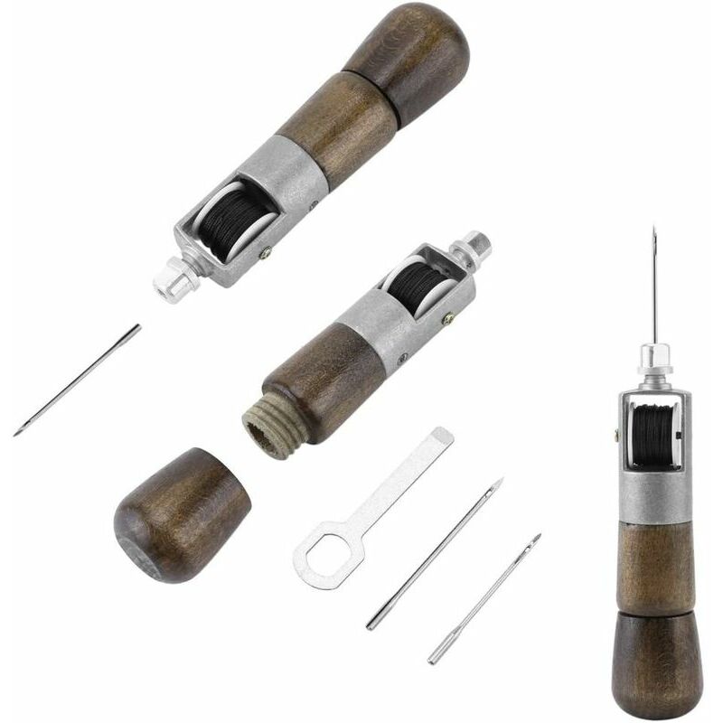 Il set per cucire a mano professionale include il punteruolo per punto annodato, due aghi e una chiave inglese che può essere riposta nel manico sagomato in legno e un rocchetto di filo nero Ampiamente usato per cucire e riparare borse di tela, scarpe, cintura, cappotto in pelle, tende, tetto dell'auto e decorazione d'interni, ecc Facile da usare, basta seguire le istruzioni nell'immagine, può aiutarti a migliorare l'efficienza Realizzato in metallo di alta qualità + materiale in legno, corpo robusto con manico in legno, comodo da impugnare < p>Costruzione leggera per una maggiore portabilità, abbastanza semplice da usare per principianti e professionisti