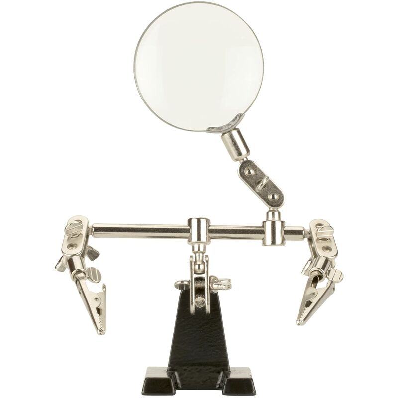 Dimensioni: 14,5*10*12,5 cm Peso: circa 325 grammi ASPETTO: accessorio per saldatura con bracci e giunti adattabili che consentono il movimento in tutte le direzioni. Contiene una lente d'ingrandimento integrata che facilita la visione UTILIZZO: Supporto perfetto per lavorare con diverse leghe, come il peltro. Perfetto per riparazioni fai da te, elettronica, telefono, domotica, riparazioni professionali. Ideale anche per saldare componenti elettronici su piastre, elettrodomestici, gioielli e molto altro QUALITÀ: prodotto con materiali di alta qualità che supportano la saldatura elettrica. La lente d'ingrandimento è resistente agli acidi e alle alte temperature VERSATILITÀ: facile da maneggiare;