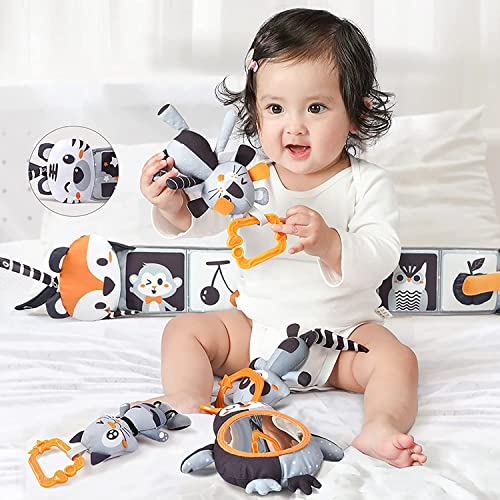 TUMAMA Giocattoli appesi per Bambini per Tappetino da Gioco, Giocattoli per Bambini in Bianco e Nero, Libro a Doppia Faccia per Carrozzina da Culla,Libro di Stoffa con Animali,Giocattolo Set Regalo