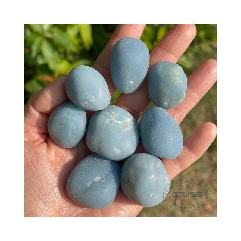 Relieves Stress • Connects with Angels • TranquilityAngelite is the name commonly given to a form of blue Anhydrite found in Peru. Angelite is formed from Celestite that has been compressed over millions of years, and it shares many properties with that stone.ROBERT SIMMONS Angelite is a stone which can act as the physical representative or anchoring talisman for the energies of one's guardian angels, guides and other friends in Spirit. Carrying, wearing, holding or being near an Angelite stone provides one with a focal point of connection for receiving love, guidance and help from the invisible ones who surround us on the higher planes. The stones themselves seem to emanate serenity and benevolence, and these are the energies being constantly broadcast through them to assist us. Communication and communion with beings on higher dimensions are Angelite's special gift, and this makes these stones useful to those wishing to develop powers of psychic attunement, channeling, mediumship