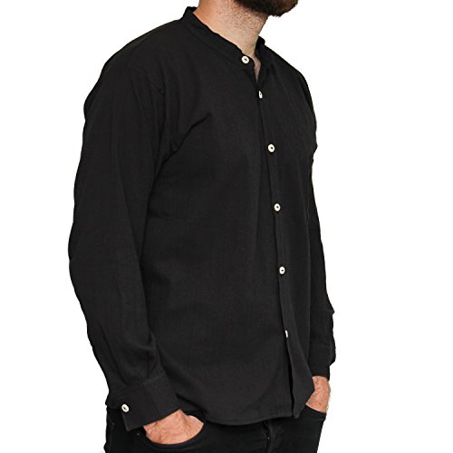Tumia LAC Camicia con Colletto di Cotone Estiva Prodotta in Ambito etico, a Maniche Lunghe. Nero.