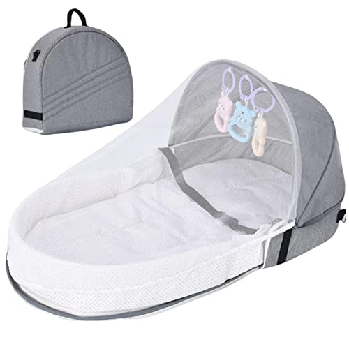 Tumotsit Travel Bassinet for Babies, Folding Bassinet for Baby, Portable Baby Bed Travel Foldable Crib, Washable Bassinets with Net And Toys, Baby Bedside Bassinet Newborn, Folding Crib for Travel