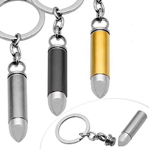 Tumundo Set di 3 Pezzi / 1 Pezzo Portachiavi Ciondolo Chiave Bullet Cartuccia pallottola Proiettile Acciaio Colore, Variante:Nero
