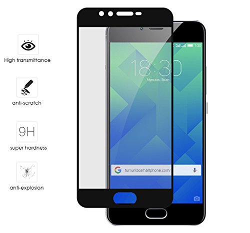 Tumundosmartphone PROTETTORE per Display in Vetro TEMPERATO Frontale Completo Nero per MEIZU M5s Vetro