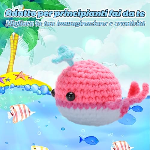 Filato per uncinetto: il nostro kit per uncinetto viene fornito con filato morbido, morbido e luminoso, non facile da rompere, facile da pulire, questi filati possono soddisfare pienamente le esigenze della balena, quindi anche se sei un principiante, non preoccuparti a corto di filo.