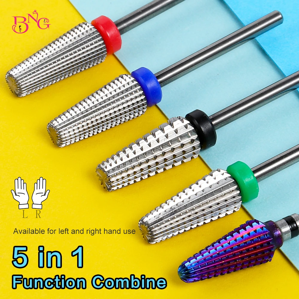 PRO 100% Tungsten steel 5 in 1 Left Right Hand Carbide Nail Drill Bits Nails Electric Drill Manicure Machine Accessory Rainbow