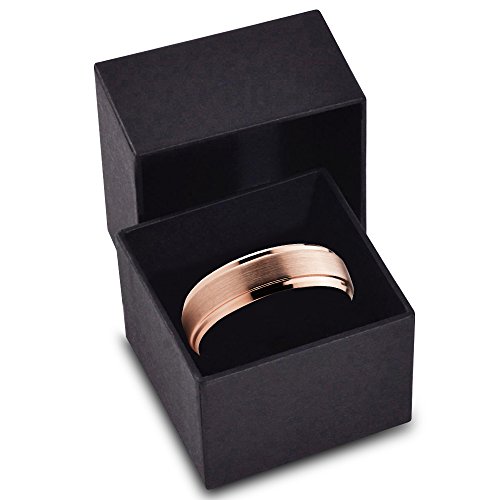 Tungsten Wedding Band Ring 6mm for Men Women Comfort Fit 18K Rose Gold Plated Beveled Edge Brushed Polished Lifetime Guarantee