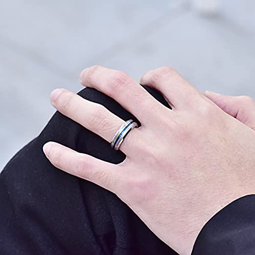 TUNGSTORY Anelli da Uomo Donna 6mm Fede Nuziale in Tungsteno Argento con Scanalatura in Blu e Bordi Smussati Taglia 22.5